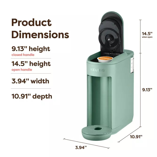 The new Keurig® K-Mini Mate Single Serve Coffee Maker is tiny but mighty with big flavor in an unbelievably small package. Don’t let its size fool you – this modern, sleekly designed brewer is a one-cup coffee maker that brews the perfect tasting cup. Complete with the same brewing technology as many bigger Keurig coffee machines, this mini coffee companion brews a cup up to 12oz with the flavor you love from any of our hundreds of K-Cup® pod varieties.