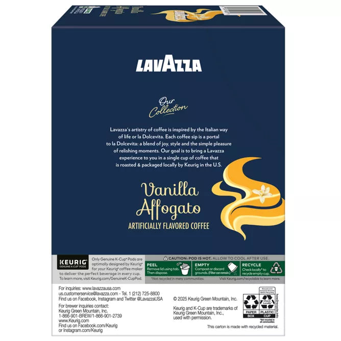 Lavazza’s artistry of coffee is inspired by the Italian way of life or la Dolcevita. Each coffee sip is a portal to la Dolcevita: a blend of joy, style, and the simple pleasure of relishing moments. Our goal is to bring a Lavazza experience to you in a single cup of coffee that is roasted and packaged locally by Keurig in the U.S.